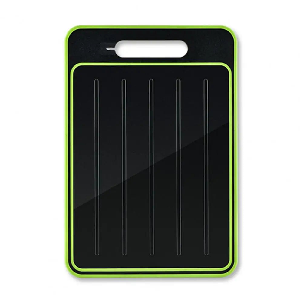 Product Name: Double-sided defrosting cutting board Functions: cutting fruits, vegetables and meat, defrosting and other functions. Material: food grade aluminum, PP, TPR Standard: in line with food cooking standards Shape: square Large cutting board: 36.5 x 25 cm Large cutting board weight: 733 g Small cutting board