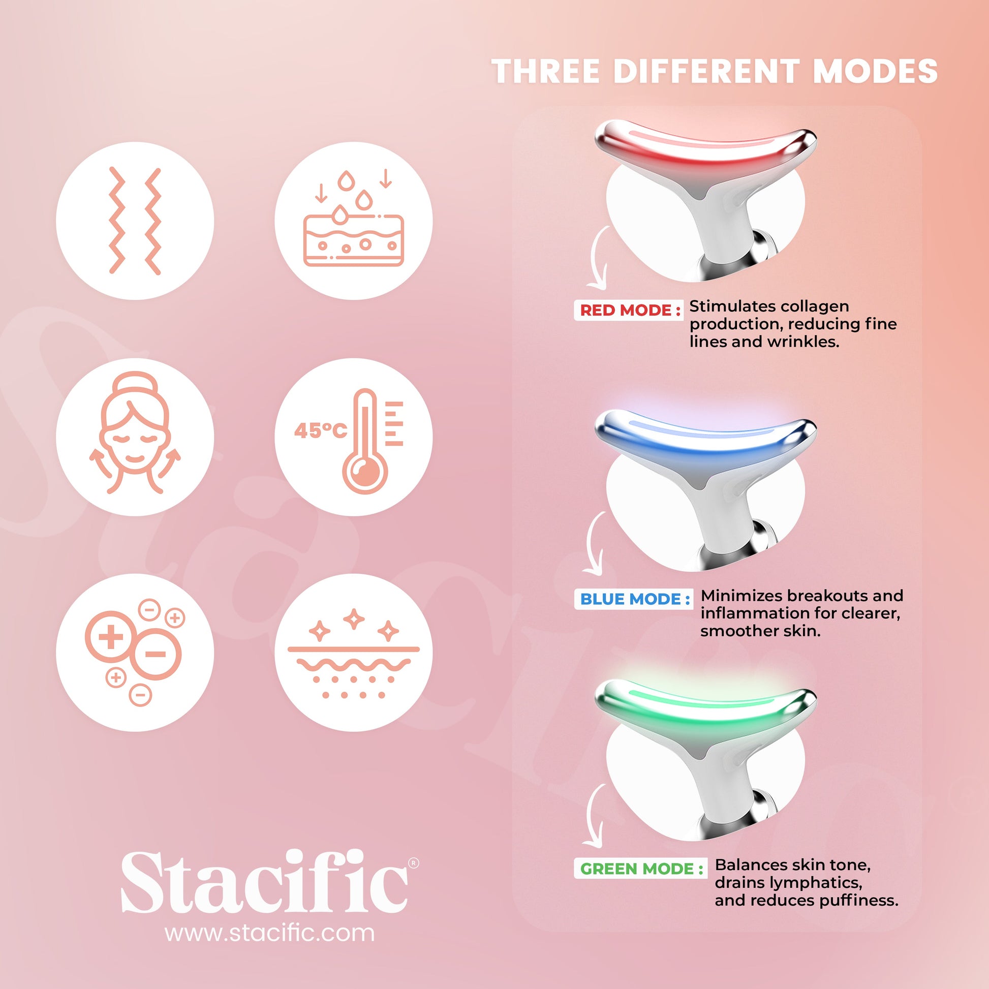 Red light: can penetrate deep into the bottom of the skin, wake up collagen activity, improve boredom, and reduce wrinkles